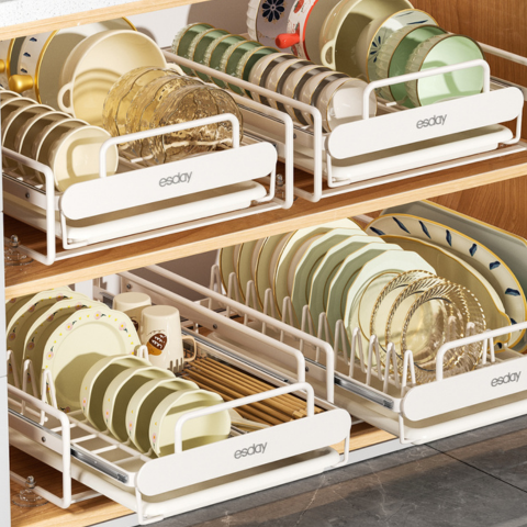 Doble nivel funcional: más espacio para platos, vasos y tazas, sin amontonarlos.