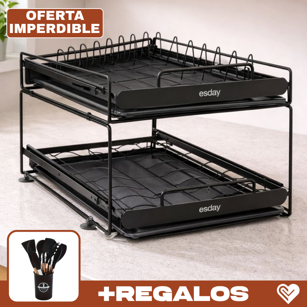 Sus dos niveles bien distribuidos permiten secar todo de forma ordenada y cómoda. Ideal para quienes disfrutan de una cocina limpia, visualmente armónica y sin caos. Todo queda en su lugar, con una estética prolija que se nota a simple vista.